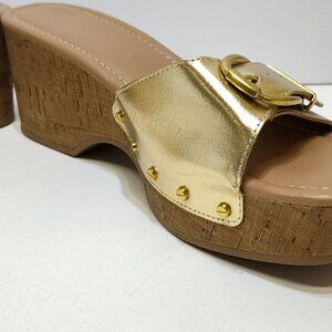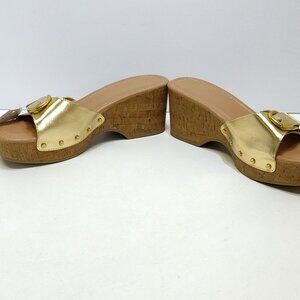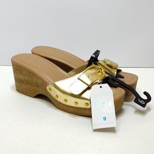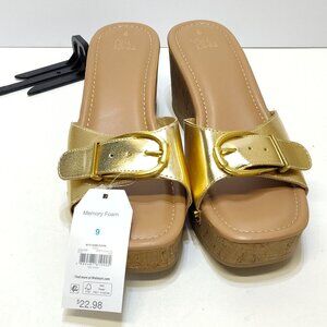 Time and Tru Gold Buckle Cork Wedge Platform Memory Foam Sandals Size 9 NWT