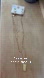 Elegant gold necklace with green and pink stones. Adds a touch of sophistication.
