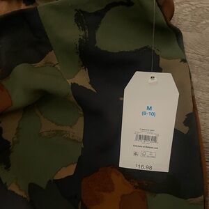 This midi slip skirt from Time and Tru features a vibrant blend of green and orange in a casual A-line silhouette. Designed with a stylish slit, it offers both comfort and a touch of flair for athletic or laid-back occasions. The flowing fabric ensures ease of movement, making it a versatile addition to your wardrobe.