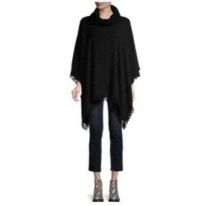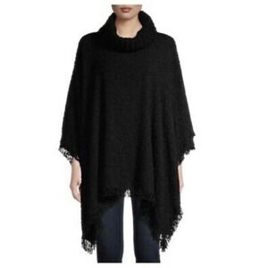 Time and Tru Heritage Poncho Ruana shawl Cowl Turtleneck black wrap stole S-M