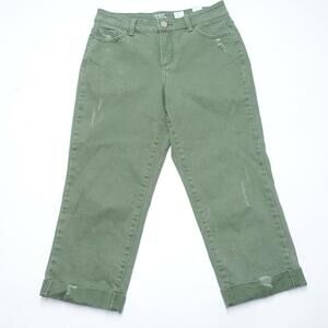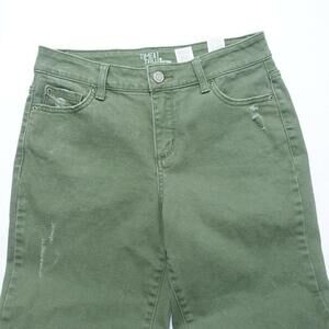 Time and Tru Jeans Women's 6 Green Denim Stretch Mid-Rise Distressed Zip Fly