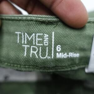 Time and Tru Jeans Women's 6 Green Denim Stretch Mid-Rise Distressed Zip Fly.