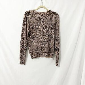 Time and Tru Leopard Print Everyday Essential Crewneck Cardigan Size M
