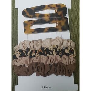 Time and Tru Leopard Print Hair Clips & Scrunchie 6 Piece Hair Set Bundle of 3