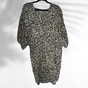Time and Tru Leopard Print Swim Cover-Up – Sheer Twist Front Kaftan – Size 1X
