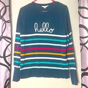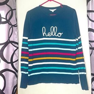 Time and Tru M shirt HELLO Sweater Navy Stripe