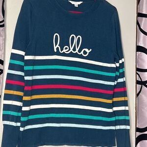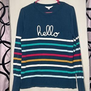 Time and Tru shirt HELLO Sweater Navy Stripe