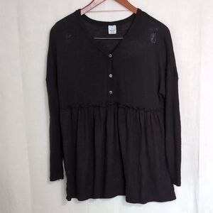 Time and Tru Maternity Black Long Sleeve Half Button Peplum Top Size Small