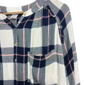 Time and Tru Maternity Blue and Pink Plaid Ruffle Button Down | Size Large