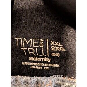 Comfy and stylish maternity jeans by Time and Tru. Womens size XXL / 2X (20) with a soft black over-belly stretch panel for all-day comfort. Medium wash blue denim with light distressing, raw-cut hems, and a relaxed skinny fit. A great everyday pair for pregnancy versatile enough to dress up or down.