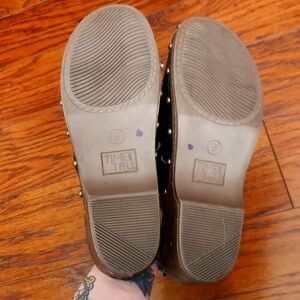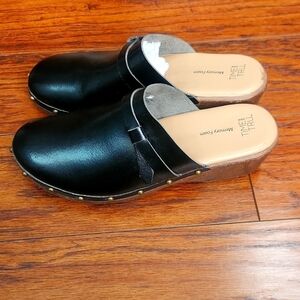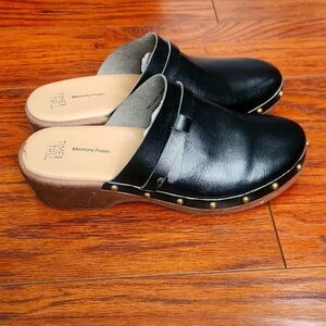Time and Tru Memory Foam Black Studded Faux Wood Slip On Mules
