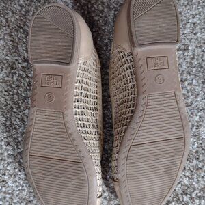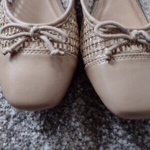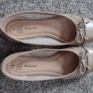 Time and Tru Memory Foam Womens Beige Woven Cap Toe Slip On Flats