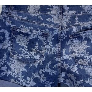 Time and Tru Mid Rise Size 12 Blue Floral Denim Cuffed Shorts