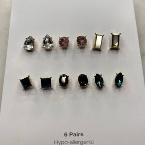 Time and Tru | NWT Six Pairs of Cut Gem Style Stud Earrings
