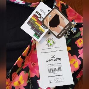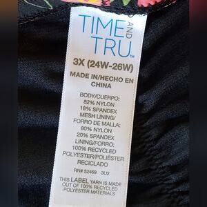 Time and Tru NWT swim suit magenta and floral removable pads mid rise bikini 3X