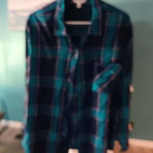 Time and Tru Navy and Teal Plaid Shirt