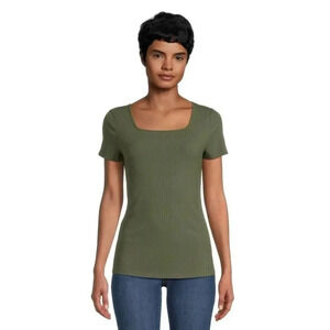 Time and Tru Olive Green Ribbed Square Neck Short Sleeve Top
