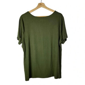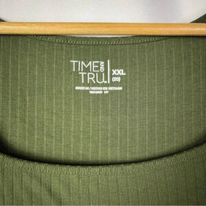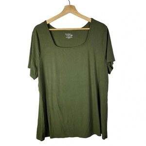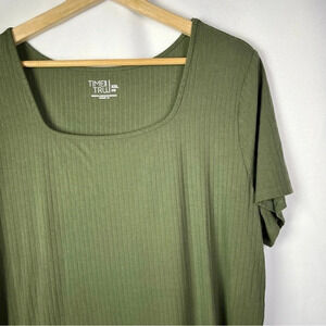 Time and Tru Olive Green Ribbed Square Neck Short Sleeve Top XXL