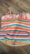 Time and Tru Orange Pink White Blue Striped Ruched Ruffle Tankini Swimsuit Top