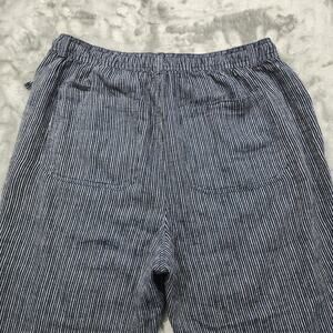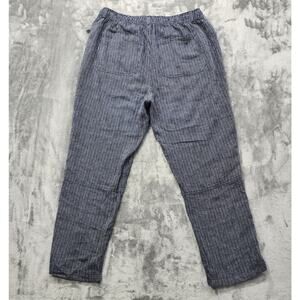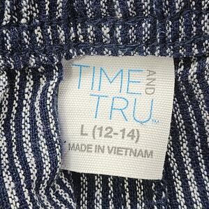 Time and Tru Pants Womens L Blue Striped Linen Blend Pull-On Pants Drawstring Coastal Casual Lagenlook Minimalist Lounge Relaxed