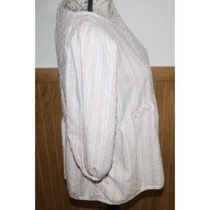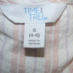 Time and Tru Pink &White Stripe Swiss Dot Blouse Sz S Babydoll Fit Keyhole Back