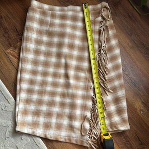 Time and Tru Plaid Fringe Midi Skirt - Tan and Cream