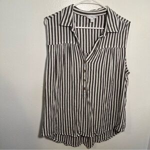 Great condition, minor wear. Time and Tru. popover tank top. Half button, split neck. Collared. White with gray stripes. Style TT22100025500S. Size XL 16-18. 100% viscose. Pit to pit laying flat 24” shoulder to hem 25”/28”. All measurements are approximate and taken lying flat. Smoke free home. No trades, offers welcome.