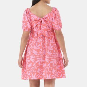 Time and Tru Puff Sleeve Textured Mini Dress in Coral Pink Size Medium NWT
