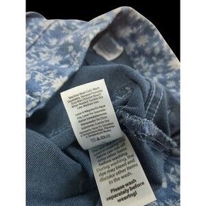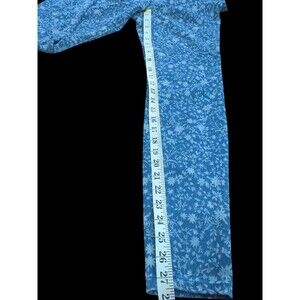 This Time and Tru Pull On Pants are designed in a size S with a floral denim pattern. The pants feature a high rise and a stretchy fabric for a fitted look. They have a pull-on closure with a flat front and a button detailing, giving them a stylish touch. These jeggings are ideal for casual occasions and are machine washable for easy care. Perfect for the winter, summer, fall, and spring seasons, these pants are a versatile and comfortable addition to any wardrobe.