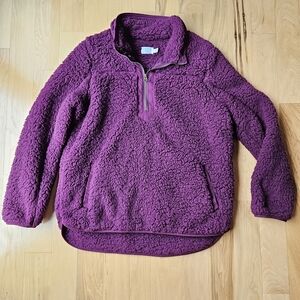 Time and Tru Purple Sherpa Cowl Neck 1/4 Zip Large