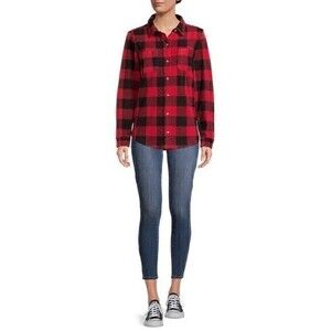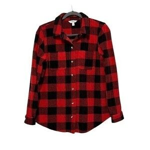 Time and Tru Red/Black Combo Women's Knit Cozy Button Front Shirt Size S