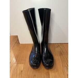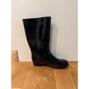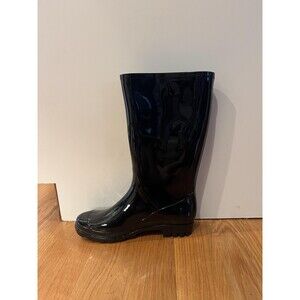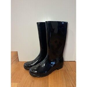 Time and Tru Rubber Rain Boots Womens Size 8 Black Waterproof Pull On Mid Calf