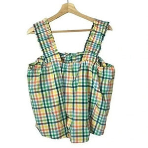 Time and Tru Ruffle Strap Multi Color Plaid Tank Top L