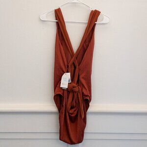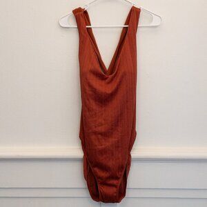 Time and Tru Rust Ribbed One-Piece Swimsuit XL High Leg NWT Sustainable