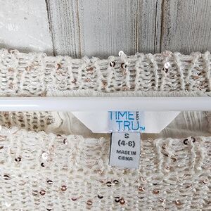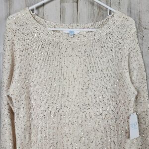 Time and Tru Mixed Media Sequin Embellished Sweater Ivory White.
