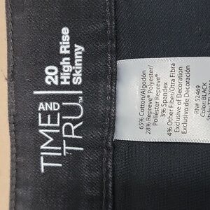 Time and Tru, Size 20 Black High Rise Skinny Jeans, Like New Condition. No Holes, Rips, Stains or snags. No Pulling or Puckering at Crotch Area. Classic 5 Pocket Styling with Zipper Fly and Button Closure. Please refer to measurements in photos to ensure proper fit.
