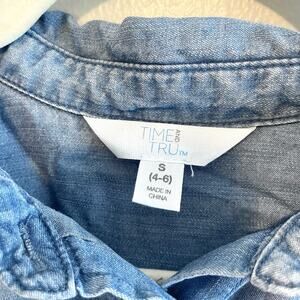 Time and Tru Size S Blue Chambray Button Up Top Short Sleeves
