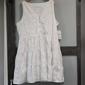 Time and Tru Sleeveless White Sleeveless V-Neck Mini Sundress NWT