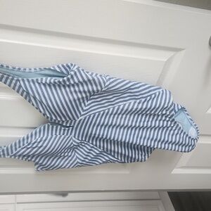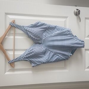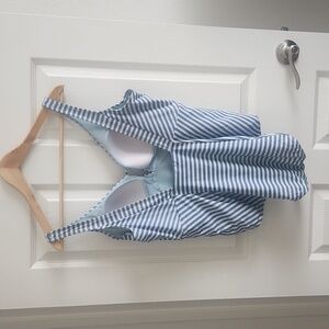 NWOT adorable slimming waistline bathing suit in pretty blue striped design. padded for extra support and comfort. never worn.