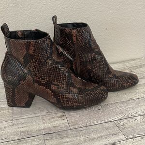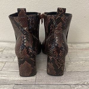 Time and Tru Snake Print Booties With Memory Foam Size 8. Good preloved condition. Minor scuff marks on back of right heel (shown in last photo). Heel measures approximately 2.5”.