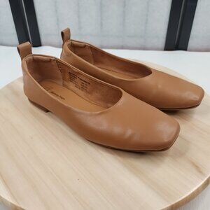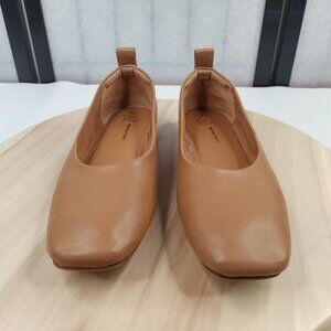 Time and Tru Soft Square Toe Ballet Flats Faux Leather Camel Women US 7.5