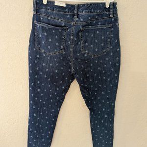 Skinny mid rise jeans with star pattern, new with tags and never worn. Advertised as fitted through the hip and thigh.