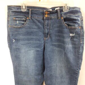 Time and Tru Stretch Ankle Mid Rise Sz 18 Blue Distressed Double Button Jeans