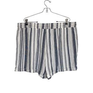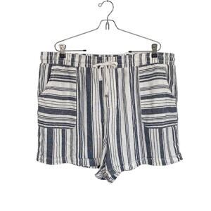 Time and Tru Striped Linen Blend Shorts Women's Size XXL (20) Off-White/Blue