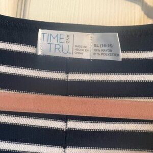 Time and Tru Striped Tie Waist V-neck Tee T-shirt Top Blouse XL 16-18 Plus Size