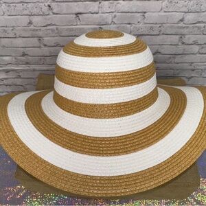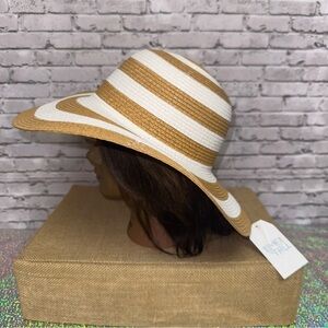 Time and Tru Striped Women's Sun Hat One Size Tan White Beach Floppy Hat. NEW WITH TAG.