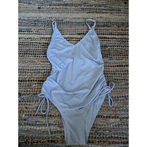 Time and Tru Swimwear Womens M Blue Missy Side Shirred One-Piece Swimsuit Ruched Ribbed Stretch Nylon Ocean Swim Pool Party Beachy Travel Vacation