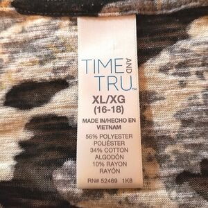 Beautiful Time and Tru T Shirt with black sheer and gray print, in good condition, easy pair with leggings or jeans, washes well, size XL.