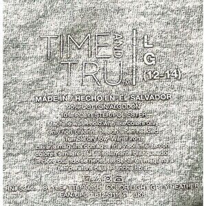 Time and Tru T-Shirt V Neck Gray Stretch Soft Cotton L 12 14 Womens Athleisure