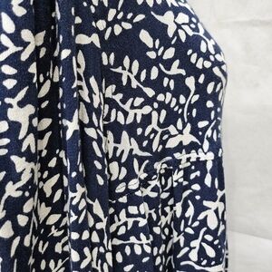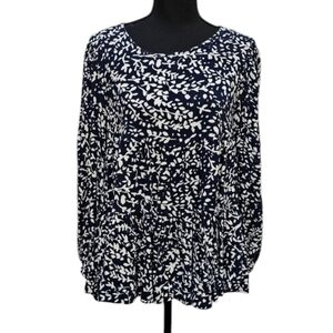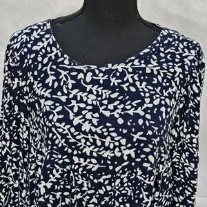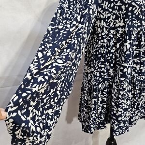 Flowy, oversized Tiered top, navy blue, and white floral print. Long Sleeve with button Cuff, keyhole and button closure on back. Peasant top. 85% Rayon 15% Lyocell. Size M 8-10
